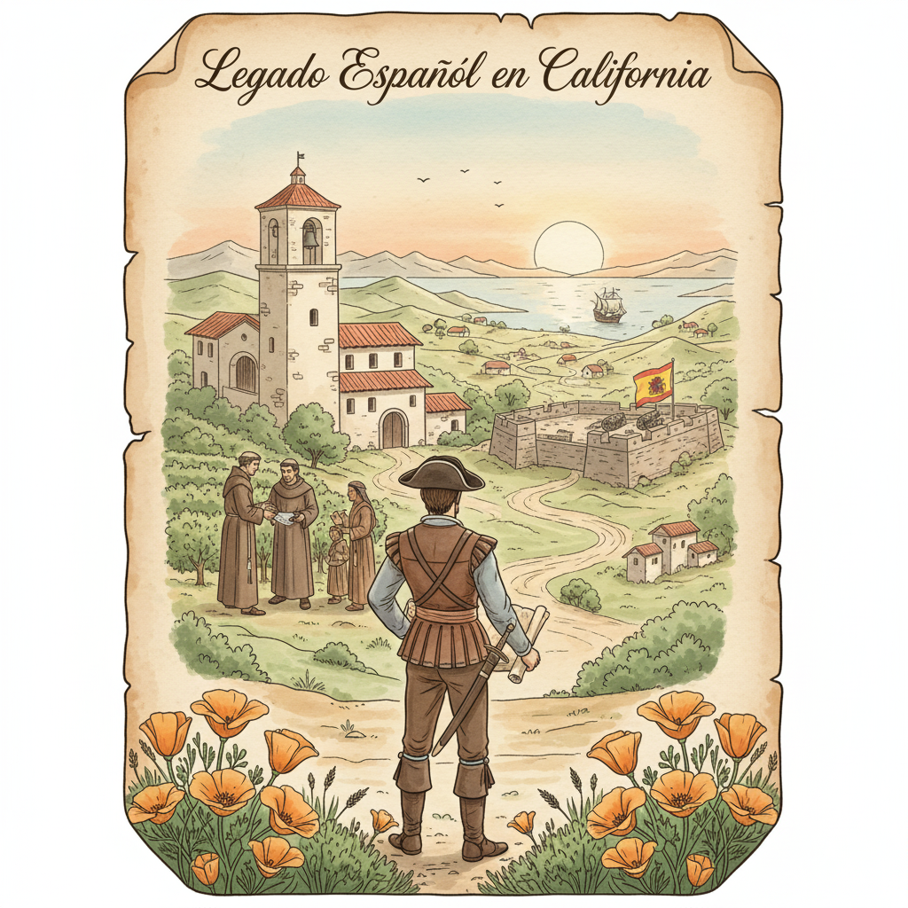 El impacto de España en California, que comenzó formalmente con la expedición de Gaspar de Portolá y Fray Junípero Serra en 1769, es la base fundacional del estado moderno, visible en la toponimia de ciudades principales como Los Ángeles y San Francisco, y en la duradera influencia cultural y arquitectónica. El aporte más significativo fue el establecimiento de un sistema de 21 misiones franciscanas a lo largo de la costa, conectadas por El Camino Real, que no solo sirvieron como centros de evangelización para las poblaciones indígenas, sino también como puntos de difusión de la tecnología agrícola europea, la irrigación, la ganadería (vacas, ovejas y caballos), y la producción de cultivos esenciales como la vid y el olivo.