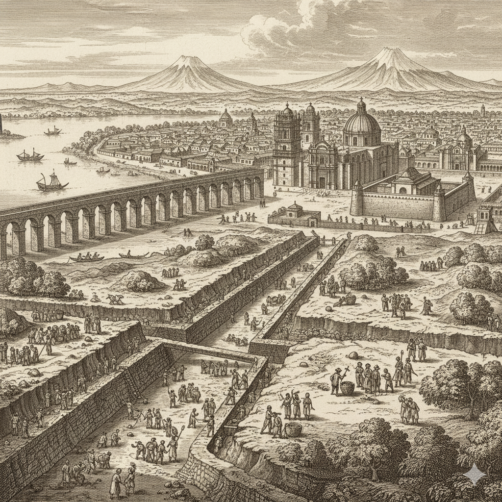 Desarrollo de la ingeniería novohispana en la Ciudad de México virreinal.
