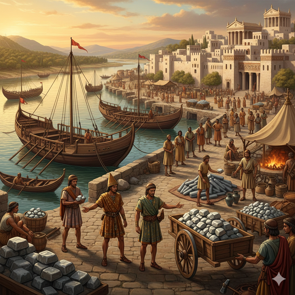 El desarrollo de la navegación y el comercio atlántico por parte de los tartessos fue un factor crucial y pionero en la historia temprana de Europa occidental. Ubicados estratégicamente en el estuario del Guadalquivir, los tartessos se convirtieron en la primera gran potencia autóctona en el Atlántico peninsular, actuando como intermediarios esenciales en la Ruta del Estaño. Si bien no inventaron los barcos de alta mar (tecnología que adquirieron de los fenicios y, en menor medida, de los griegos), sí fueron pioneros en la organización logística y el establecimiento de rutas marítimas y fluviales estables hacia el Norte y el Sur del Atlántico. Su principal innovación fue la explotación intensiva de la plata de la Faja Pirítica Ibérica, lo que generó un excedente de capital que impulsó su flota. Este dominio les permitió controlar el flujo de bienes valiosos: exportaban su propia plata a través del Estrecho de Gibraltar y facilitaban el comercio de estaño atlántico (procedente de Bretaña, Cornualles o Galicia) hacia las civilizaciones del Mediterráneo, haciendo que la Península Ibérica funcionara como una bisagra comercial y naval entre el mundo Atlántico y el Mar Interior. Este control de las rutas y su riqueza en metales fundaron su poder, pero también su dependencia de las rutas comerciales que, tras la caída de su área de influencia, serían heredadas por Cartago.