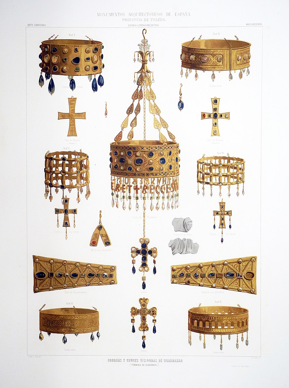La orfebrería en la España antigua evolucionó desde el martillado de láminas de oro de la Edad del Bronce (como en el Tesoro de Villena) hacia la sofisticación técnica de los Tartessos, quienes introdujeron la filigrana y el granulado (visibles en el Tesoro del Carambolo). Mientras que los pueblos celtas destacaron por la fundición de macizos torques y los íberos por el minucioso repujado, el proceso culminó con los visigodos y su dominio del cloisonné, técnica de micro-ingeniería utilizada en el Tesoro de Guarrazar para incrustar gemas en alvéolos de oro. El Tesoro de Guarrazar no solo es una obra maestra artística, sino la prueba de que los talleres de Toledo poseían una capacidad de micro-ingeniería y control de aleaciones equiparable a las mejores cortes bizantinas de la época. En conjunto, esta tradición milenaria transformó la riqueza minera de la península en un legado de innovación metalúrgica que combinó el control de las aleaciones, la soldadura de precisión y el diseño artístico de vanguardia para su época.