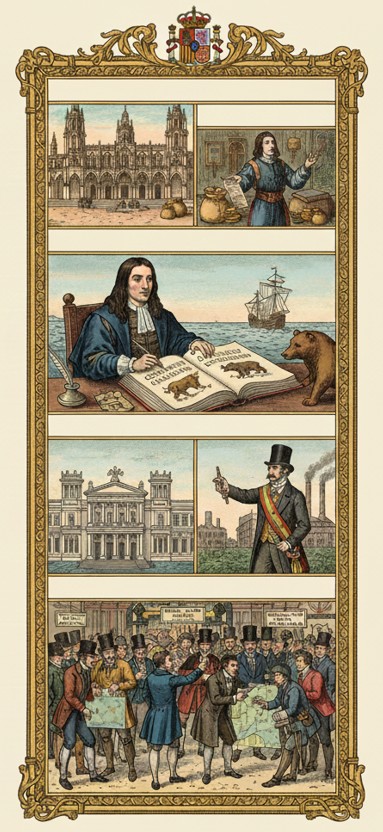 El papel de España en la creación y el desarrollo de la bolsa de valores es una trayectoria histórica de gran profundidad que se remonta a la Baja Edad Media con la instauración de las Lonjas de Contratación en la Corona de Aragón, donde ciudades como Valencia, Barcelona y Palma de Mallorca establecieron centros de negociación formal que gestionaban contratos de seguros, letras de cambio y fletamentos, sentando las bases de la infraestructura financiera europea. A esta estructura física se sumó la creación de los Juros Reales por parte de la Corona española, títulos de deuda pública que representan uno de los antecedentes más claros de la renta fija moderna. Lo innovador no fue solo su creación, sino su negociabilidad: los ciudadanos podían comprar y vender estos títulos entre sí, creando un mercado secundario de renta fija que es el antecesor directo del mercado de bonos actual. Este sistema permitió que el capital privado financiara las empresas estatales y las campañas en el Nuevo Mundo. Un hito intelectual sin parangón ocurrió en 1688, cuando el español José de la Vega publicó en Ámsterdam Confusión de Confusiones, el primer tratado del mundo sobre el funcionamiento del mercado bursátil escrito íntegramente en español, en el cual se describieron por primera vez las dinámicas psicológicas, el mercado de opciones y las estrategias de especulación que hoy rigen las finanzas globales. Este legado culminó institucionalmente en el siglo XIX con la labor del jurista Pedro Sáinz de Andino, quien redactó la ley que permitió a Fernando VII fundar oficialmente la Bolsa de Madrid en 1831, dotando al país de un mercado de valores moderno y regulado que resultó imprescindible para canalizar el capital privado hacia la industrialización, el desarrollo de la red ferroviaria y la minería, consolidando así un sistema financiero que conectaba el derecho mercantil clásico con las necesidades de la economía capitalista contemporánea. España creó en 1999 el Latibex, el único mercado internacional exclusivo para valores latinoamericanos en euros. Esto posicionó a Madrid como el puente financiero natural entre Europa y América Latina, permitiendo que grandes empresas de Brasil, México o Chile coticen bajo regulación europea.